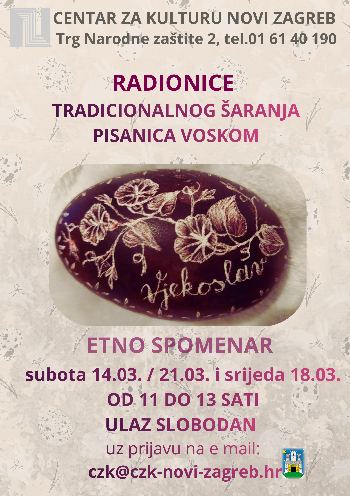 Pridružite nam se i upoznajte se s postupkom i priborom potrebnim za izradu pisanica, ali i s dubokim značenjem simbola koji se na njima crtaju — svaki motiv nosi svoju priču, poruku i zavičajni identitet. Pisanice nisu samo ukras; one su živi zapis naše kulturne baštine.