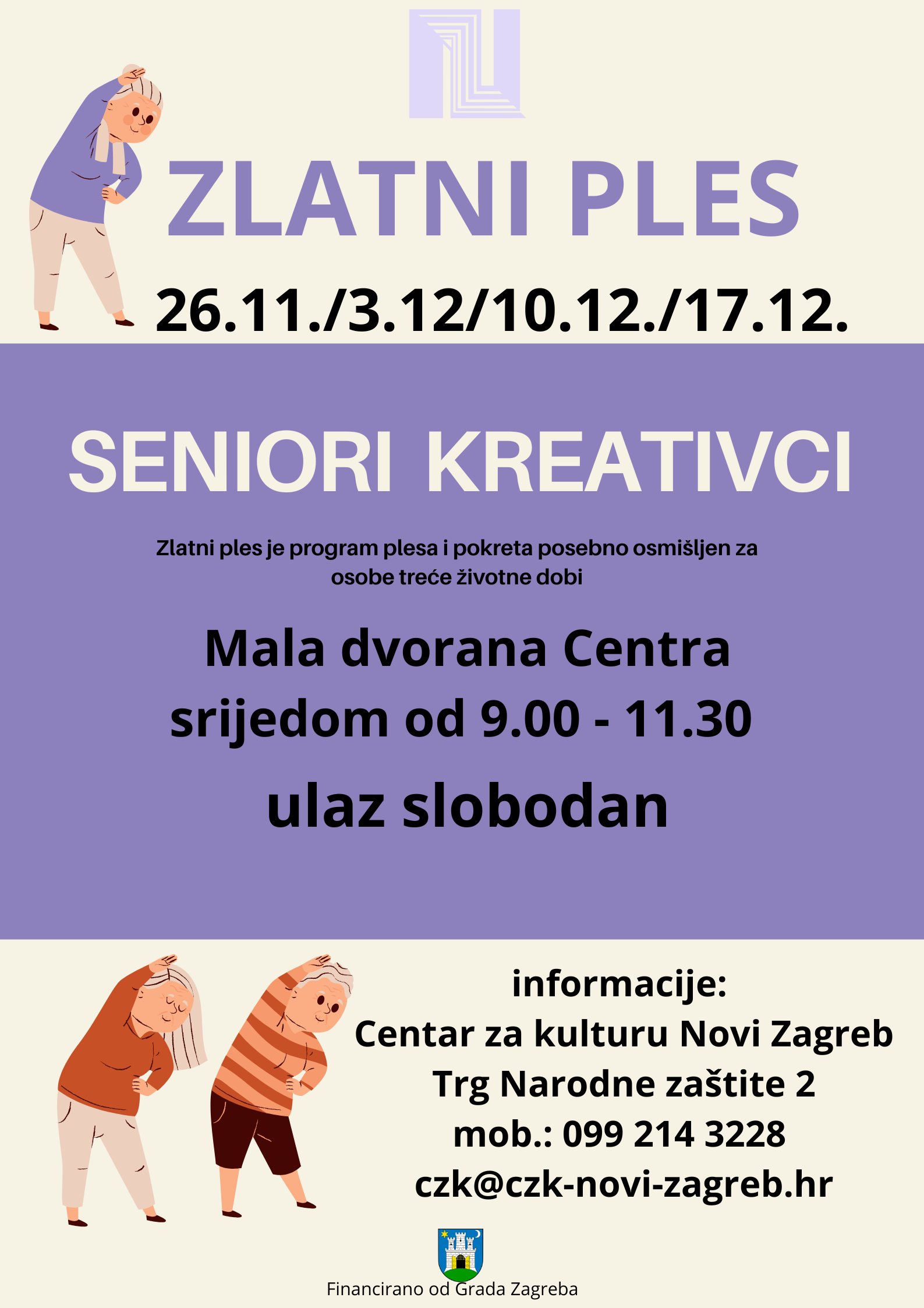 SRIJEDOM OD 9.00 – 10.30 sati Mala dvorana Centra (Trg Narodne zaštite 2, Remetinec) Zlatni ples je program plesa i pokreta posebno osmišljen za osobe treće životne dobi. Autorica programa je Nikica Viličić (mr.sc. biološke antropologije, educirana u području...
