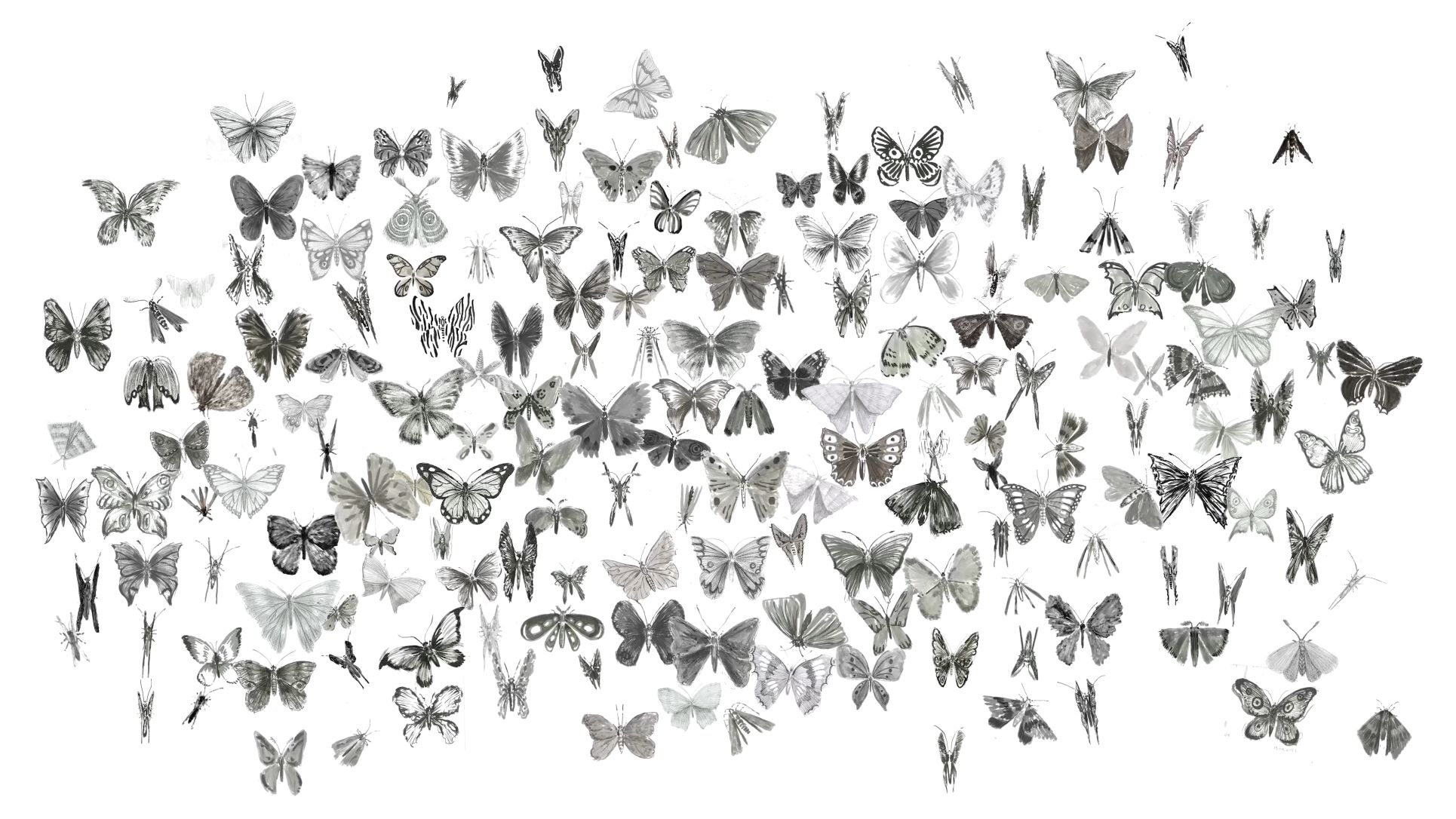 Prostorom Galerije Vladimir Bužančić dominiraju dvije videoprojekcije, jedna s prikazom tigra te druga s kompozicijom mnoštva leptira i moljaca, koje određuju ritam i ugođaj ambijenta. Rad s animiranim tigrom koji se šeće zidom lijevo-desno, sinkroniziran je zvukom ljudskih koraka. Taj prikaz anksioznosti zatočene životinje dojmljivo ilustrira i egzistencijalno stanje čovjeka u vremenu pandemije, ali i općenito u suvremenom društvu, kojemu se život uglavnom sastoji od ponavljanja istih radnji. Vreva animiranih leptira i moljaca u radu Okupljanje podsjeća na entomološku kolekciju koja je naglo oživjela i otima se kontroli te upućuje na krhkost živih bića, ali i čudesni potencijal preobrazbe koji im je imanentan.