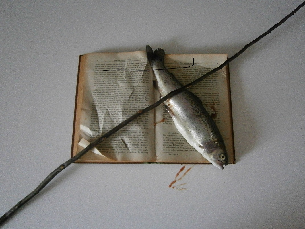Umjetnikov performans čini sklop snažnih vizualnih slika sastavljen od pet filozofskih knjiga koje su dio kanonske literature zapadne civilizacije, izložene na postamentima na koje umjetnik polaže ribe i prućem šiba jednu po jednu knjigu dok se istovremeno reproducira audiosnimka čitanja odlomaka tih knjiga. Vincek kulturi suprotstavlja prirodu odnosno ribu kao simbol podsvjesnog, autentičnog i predjezičnog. Razmatra jezik kao neku vrstu nasilja nad spoznajom koju jednako čine i emocije i senzualna percepcija. Šibanu ribu možemo doživjeti kao mrtvo slovo na papiru, tj. istinu koja se izgubila negdje između riječi.