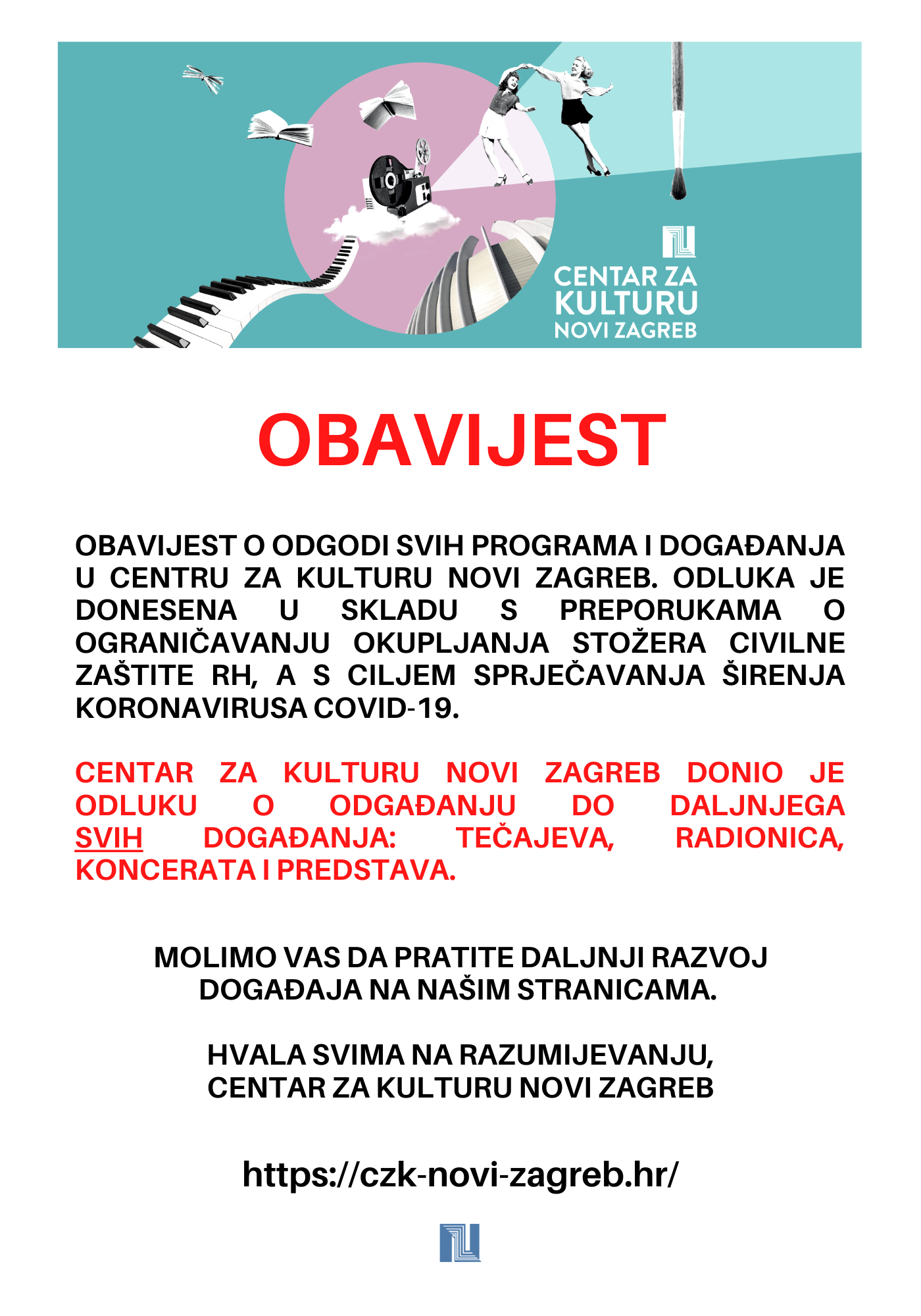 OBAVIJEST O PRIVREMENOJ OBUSTAVI PROGRAMA CZK NOVI ZAGREB