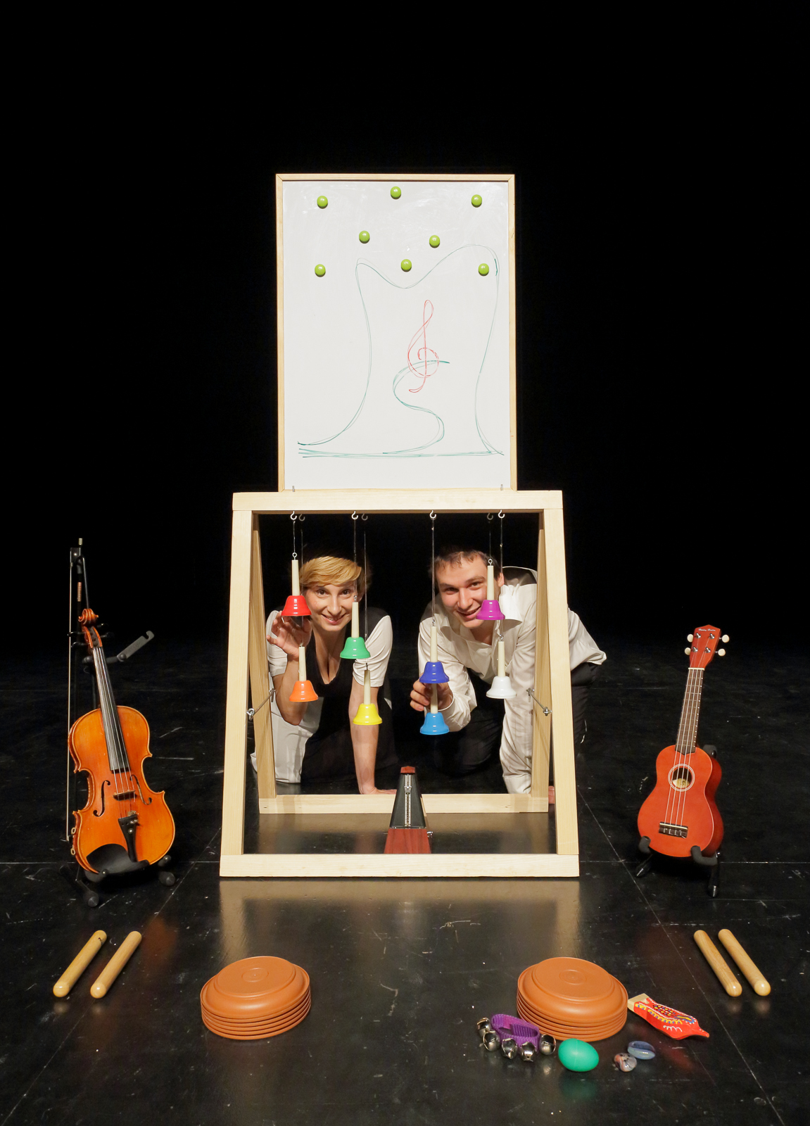 Glazba se izvodi uživo na pozornici (violina i ukulele).