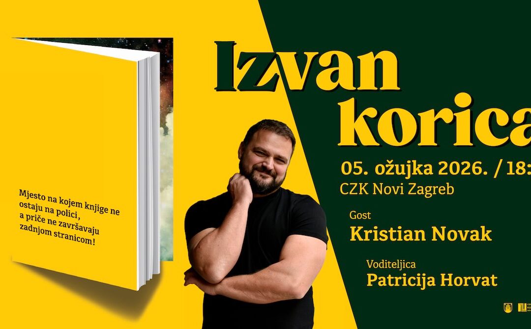 Novi književni program „Izvan korica“ u Centru za kulturu Novi Zagreb (Trg Narodne zaštite 2) ide dalje: u drugom izdanju, u četvrtak 5. ožujka 2026. u 18:30 sati, u goste nam dolazi jedan od najomiljenijih i najnagrađivanijih hrvatskih književnika KRISTIAN NOVAK, čiji romani osvajaju srca publike i priznanje kritike. U romanima “Črna mati zemla” (2013.), “Ciganin, ali najljepši (2016.)” i „Slučaj vlastite pogibelji“ (2023.) istražuje kompleksnost ljudskih odnosa i identiteta u suvremenom svijetu pokazujući vještinu iznošenja snažnih emotivnih priče koje se ne boje dotaknuti i najosjetljivijih društvenih pitanja. S voditeljicom Patricijom Horvat publici će približiti svoj literarni svijet, ali i ono izvan njega: jezikoslovlje i znanstveni rad, sport, društvene i tehnološke mijene, razmišljanja o budućnosti…
