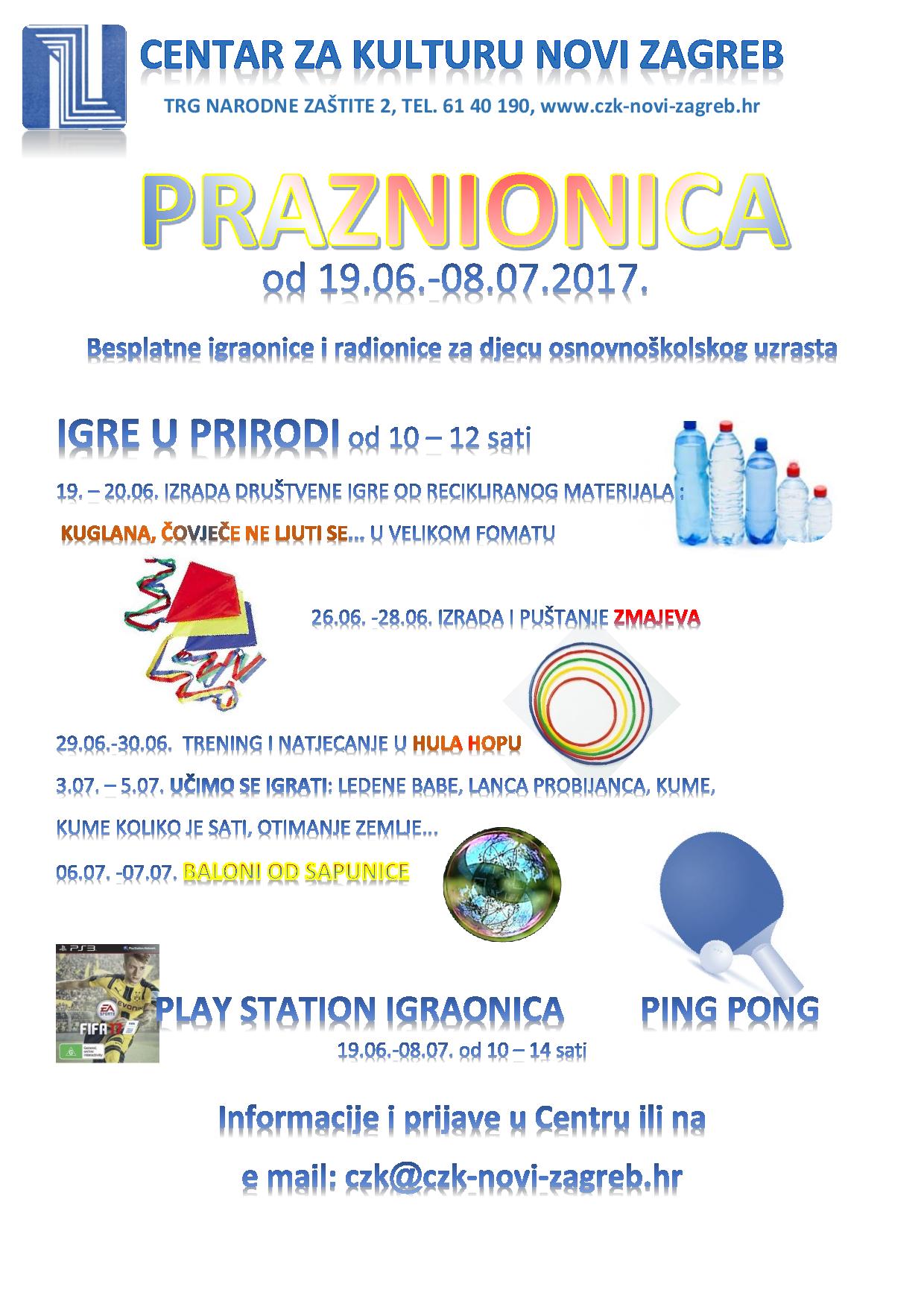 Djeco očekujemo vaš dolazak. Provedite ugodno dio svojih ljetnih praznika uz Praznionicu Centra za kulturu Novi Zagreb.