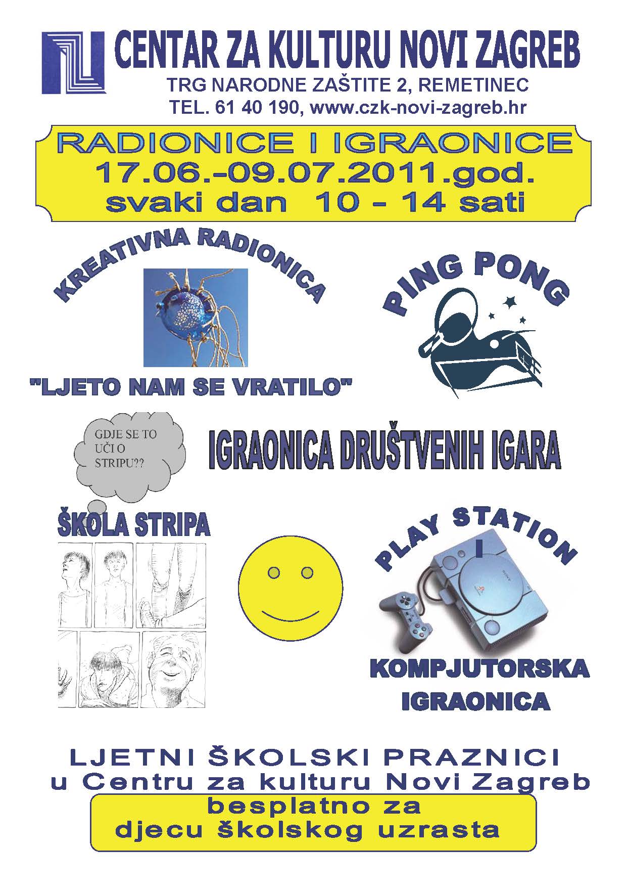 Centar za kulturu Novi Zagreb organizira besplatne igraonice i radionice za djecu i mladež osnovnoškolskog i srednjoškolskog uzrasta, svaki dan od 10 – 14 sati :