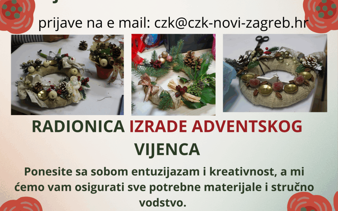 Centar za kulturu Novi Zagreb poziva sve ljubitelje kreativnog stvaralaštva treće životne dobi na kreativnu radionicu izrade adventskog vijenca. Iako mnogi od nas brižno čuvaju svoje blagdanske dekoracije, svaka nova godina pruža priliku za obogaćivanje naše dragocjene zbirke.